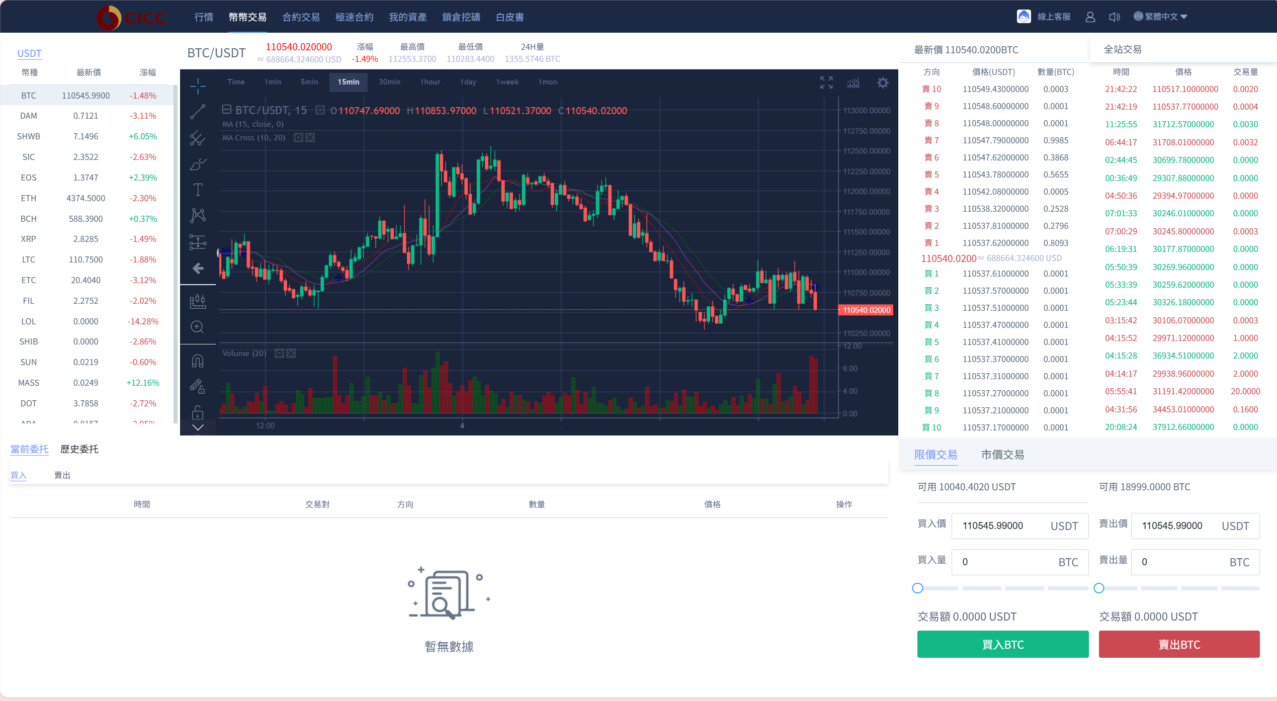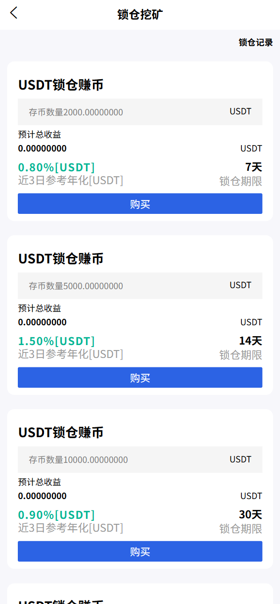 功能包括:币币交易,永续合约,秒合约,锁币挖矿,理财功能,快捷买币。