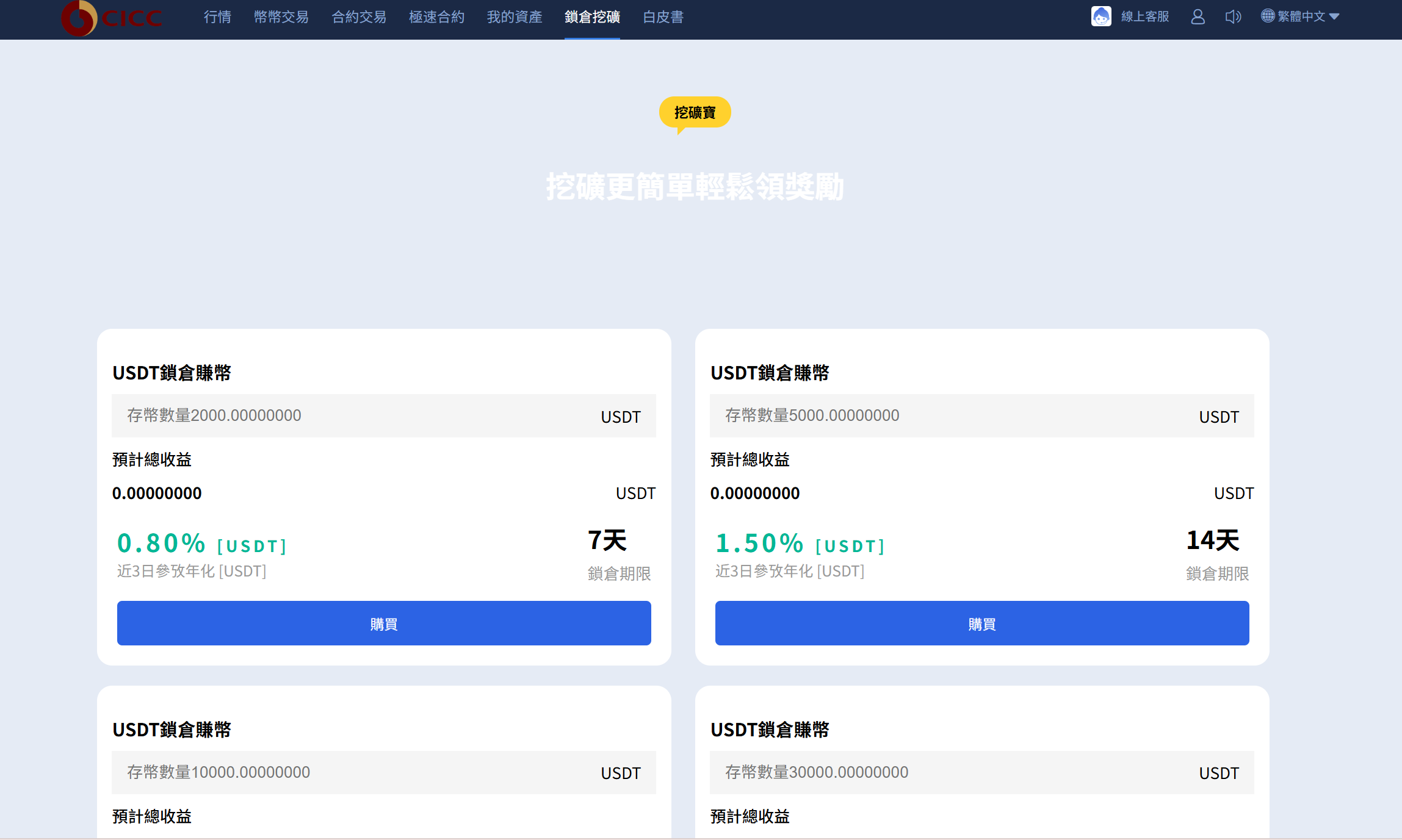此套是以前的一套交易所二开的UI,支持锁仓挖矿、币币、法币、秒合约,算是比较全的一套交易所了